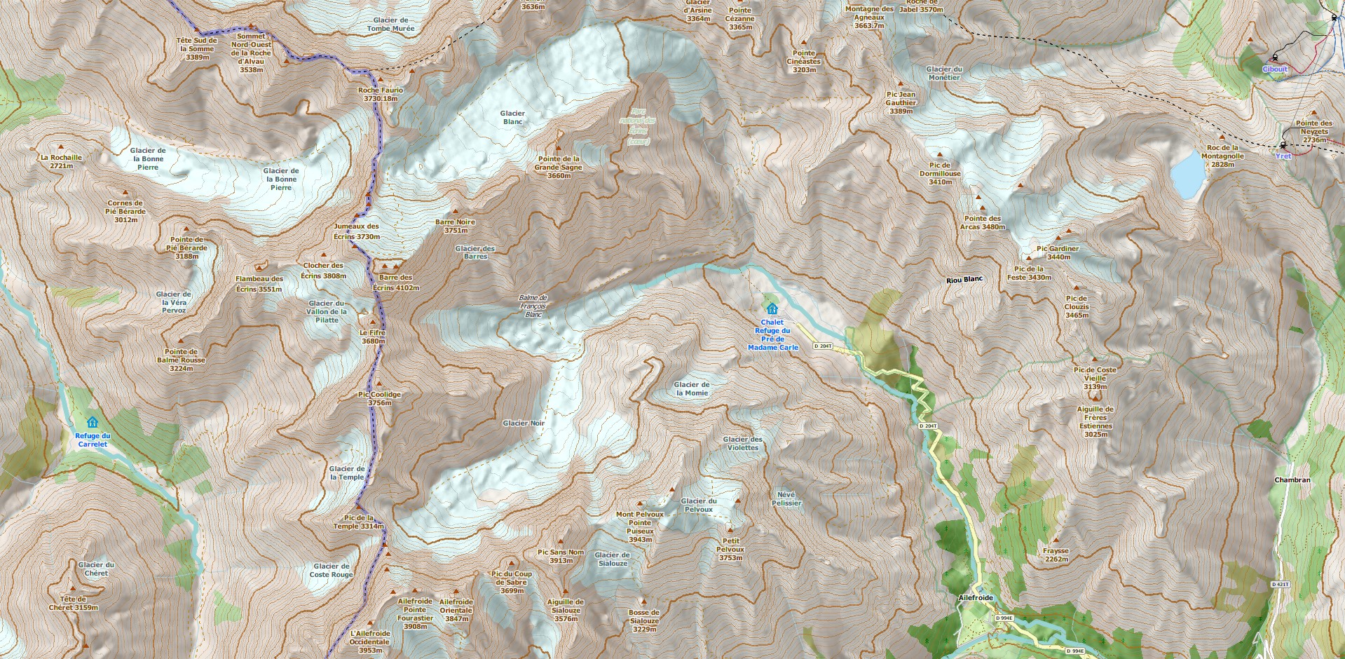 Le relief (zoom<14) est SRTM 3s avec les compléments de :